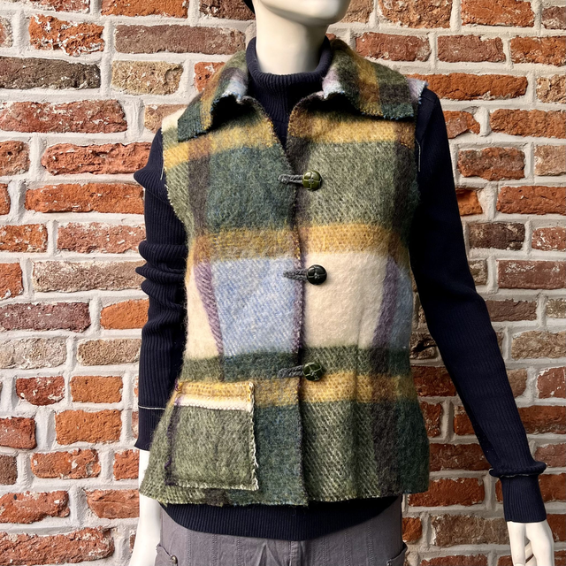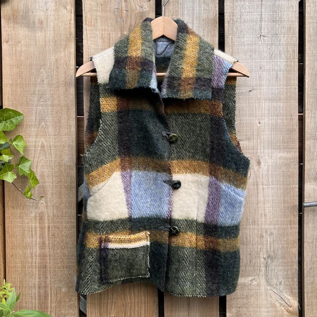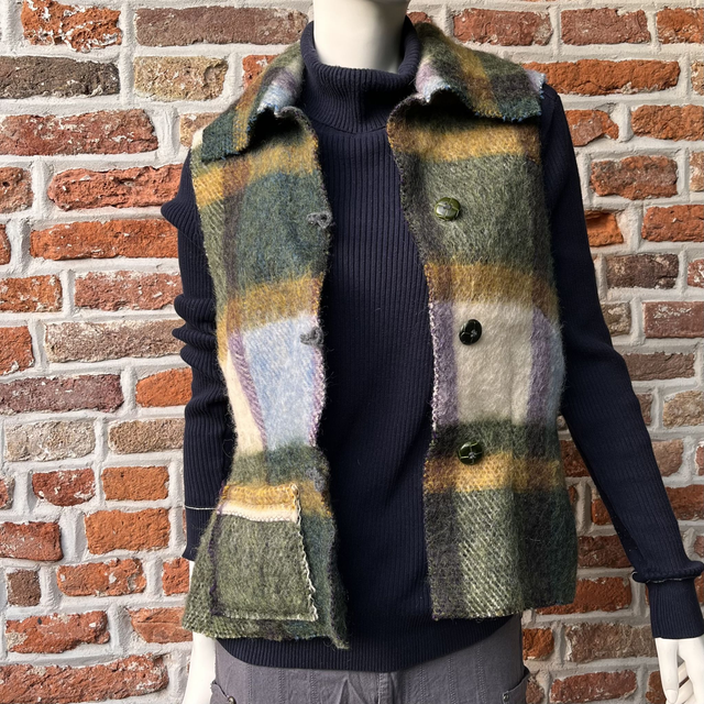 Koud? Trek een dekentje aan. Deze zachte bodywarmer is gemaakt van een oude wollen deken.
