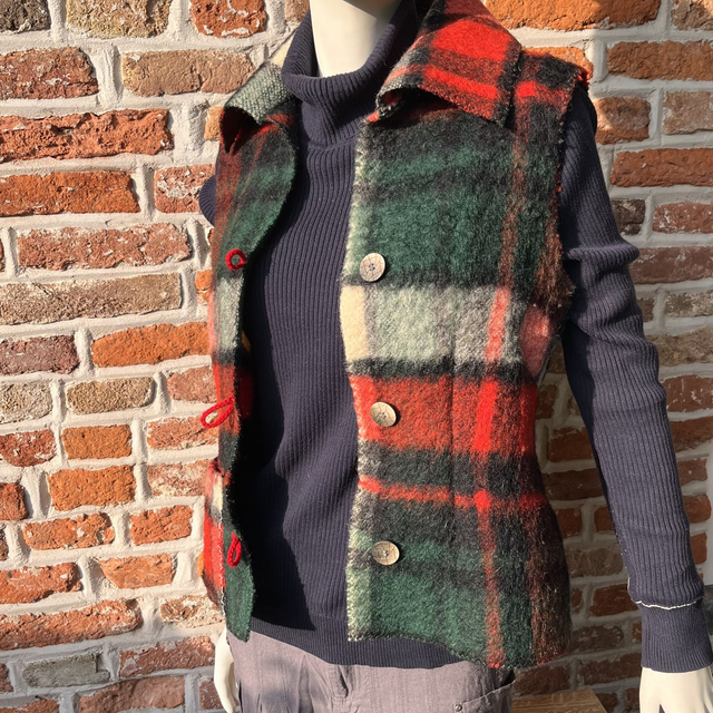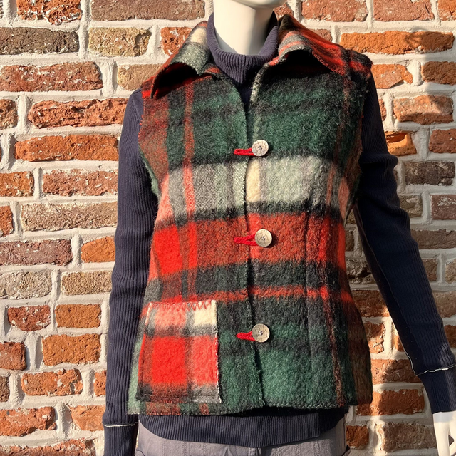 Lichte, ademende bodywarmer gemaakt van wollen AaBe deken.