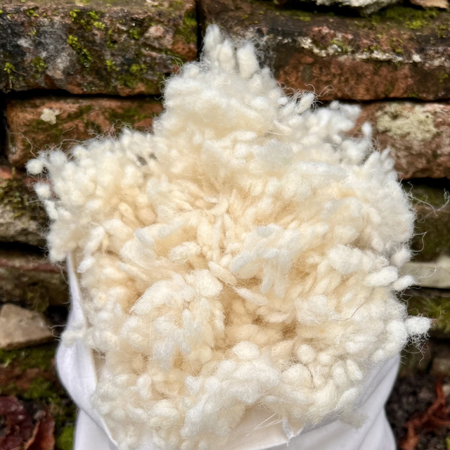 De ene kant is gemaakt van een dikke wollen AaBe deken en de andere kant van een dicht geweven dunne wollen deken.