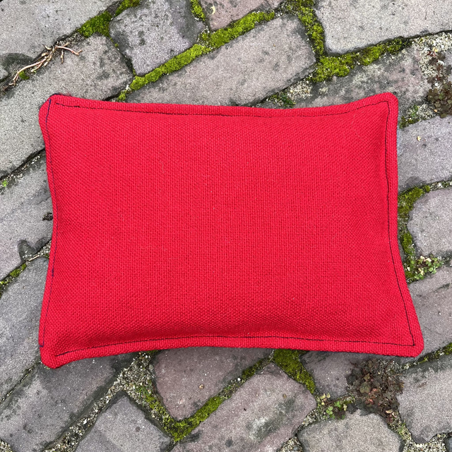 Let op: dit is dus echt een klein kussentje, iets groter dan een warmwaterkruik, zie de foto met hand voor een idee van de grootte.