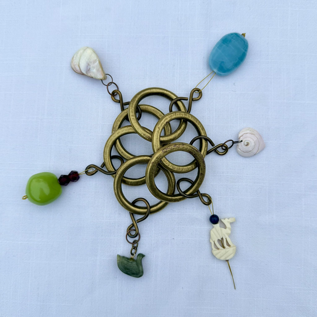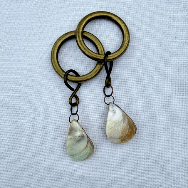 De bedels komen van een zware, kitscherige ketting. Los zijn ze wel mooi en zie je de bijzondere tekening die aan de binnenkant van zo'n schelp zit.