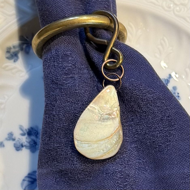 Deze servetringen zijn gemaakt van vintage gordijnringen.